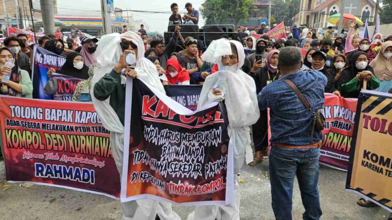 MEDAN — Seribuan massa warga dari berbagai penjuru Kota Tanjungbalai dan sekitarnya, menggeruduk Markas Polda Sumatera Utara, Jumat (25/7/2025), menuntut pemecatan Kompol Dedi Kurniawan (DK), perwira menengah yang diduga mengkriminalisasi seorang warga bernama Rahmadi.