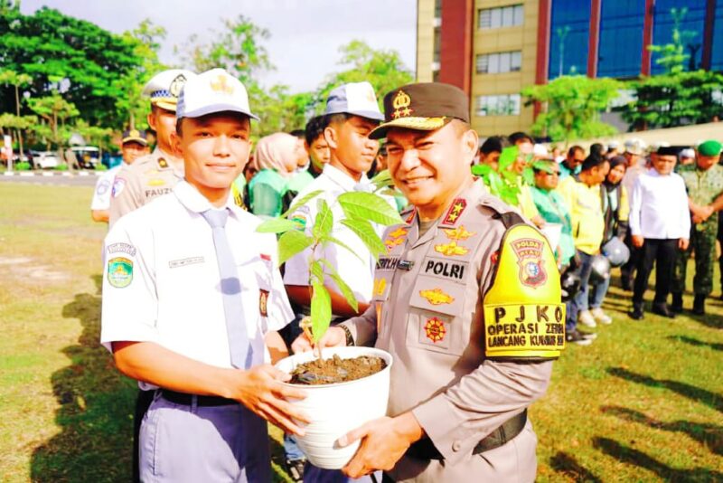 Di akhir apel, Kapolda Irjen Herry Heryawan memberikan bibit pohon kepada siswa apel, serta helm SNI untuk ojek online.