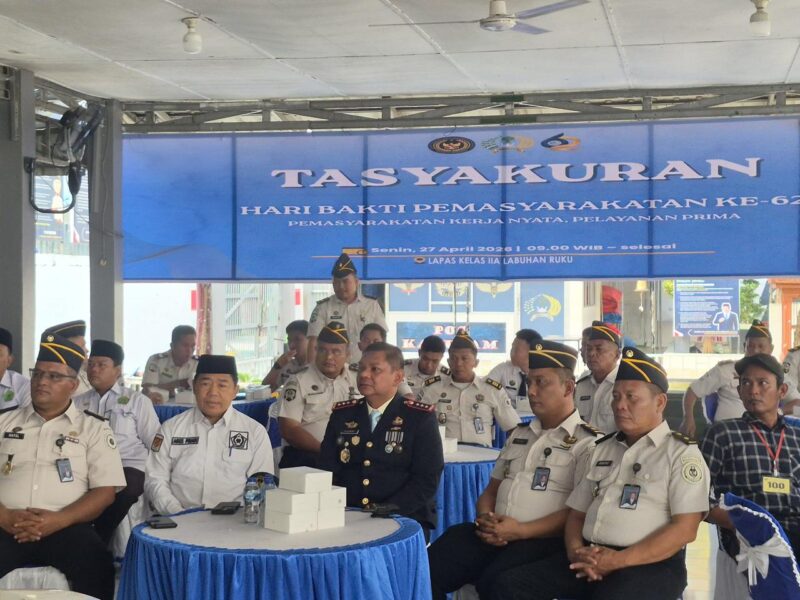​Batu Bara – Lembaga Pemasyarakatan (Lapas) Kelas IIA Labuhan Ruku mengikuti kegiatan tasyakuran dalam rangka memperingati Hari Bakti Pemasyarakatan (HBP) ke-62 secara virtual pada Senin (27/04/2026).